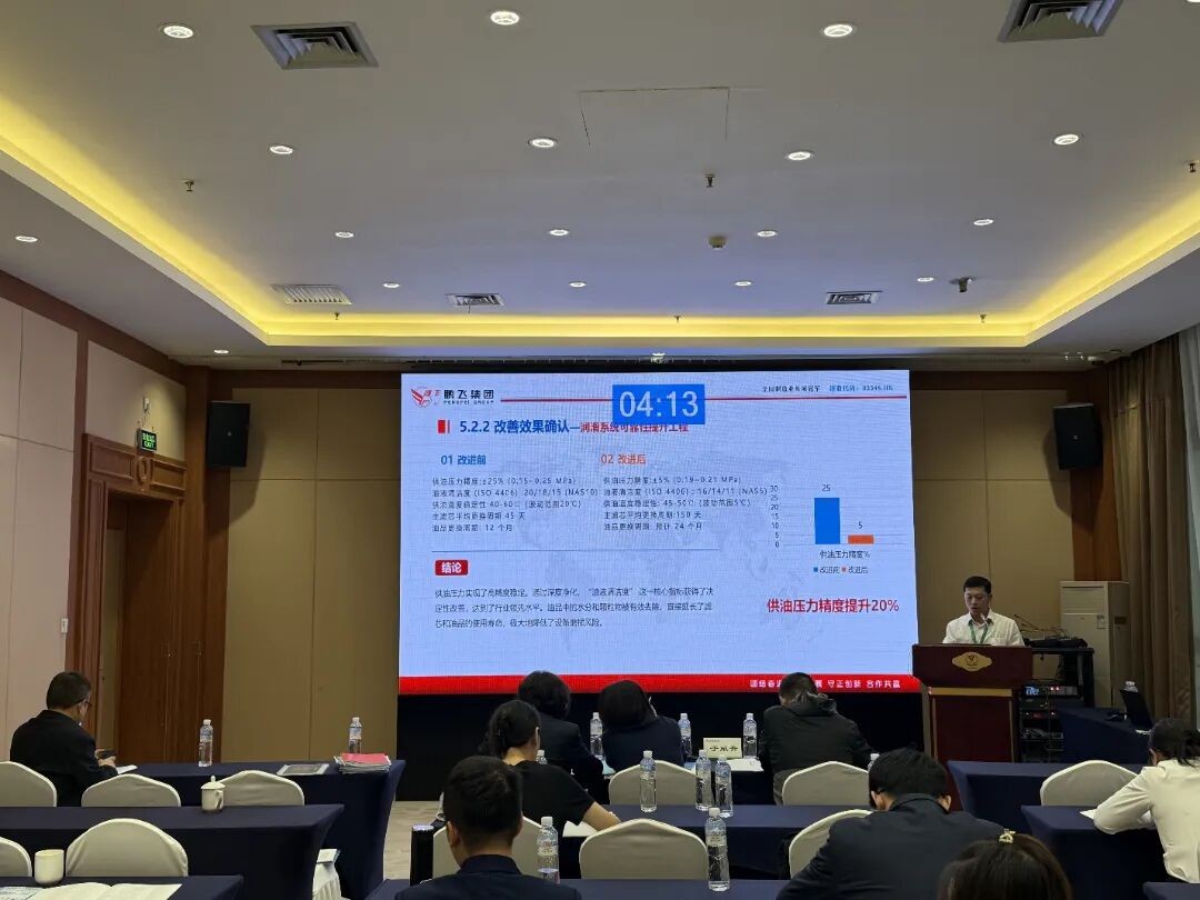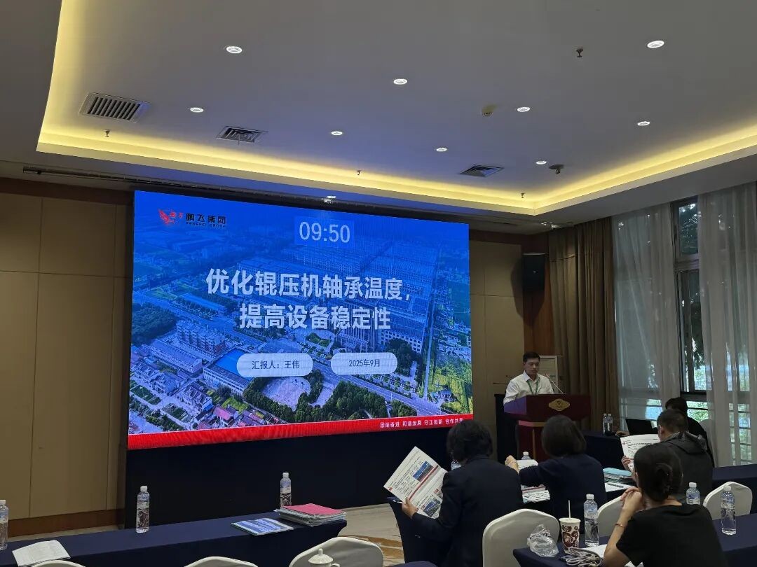 鵬飛集團(tuán)輥壓機(jī)QC小組發(fā)表成果《優(yōu)化輥壓機(jī)軸承溫度,提高設(shè)備穩(wěn)定性》。輥壓機(jī)QC小組圍繞輥壓機(jī)軸承溫度高、冷卻水流量不穩(wěn)定等問題,通過優(yōu)化冷卻水路和潤滑系統(tǒng),規(guī)范安裝工藝。改進(jìn)后軸承溫度降至50℃以內(nèi),設(shè)備綜合效率提高7%,壽命延長20%,顯著提升設(shè)備穩(wěn)定性,降低了能耗。